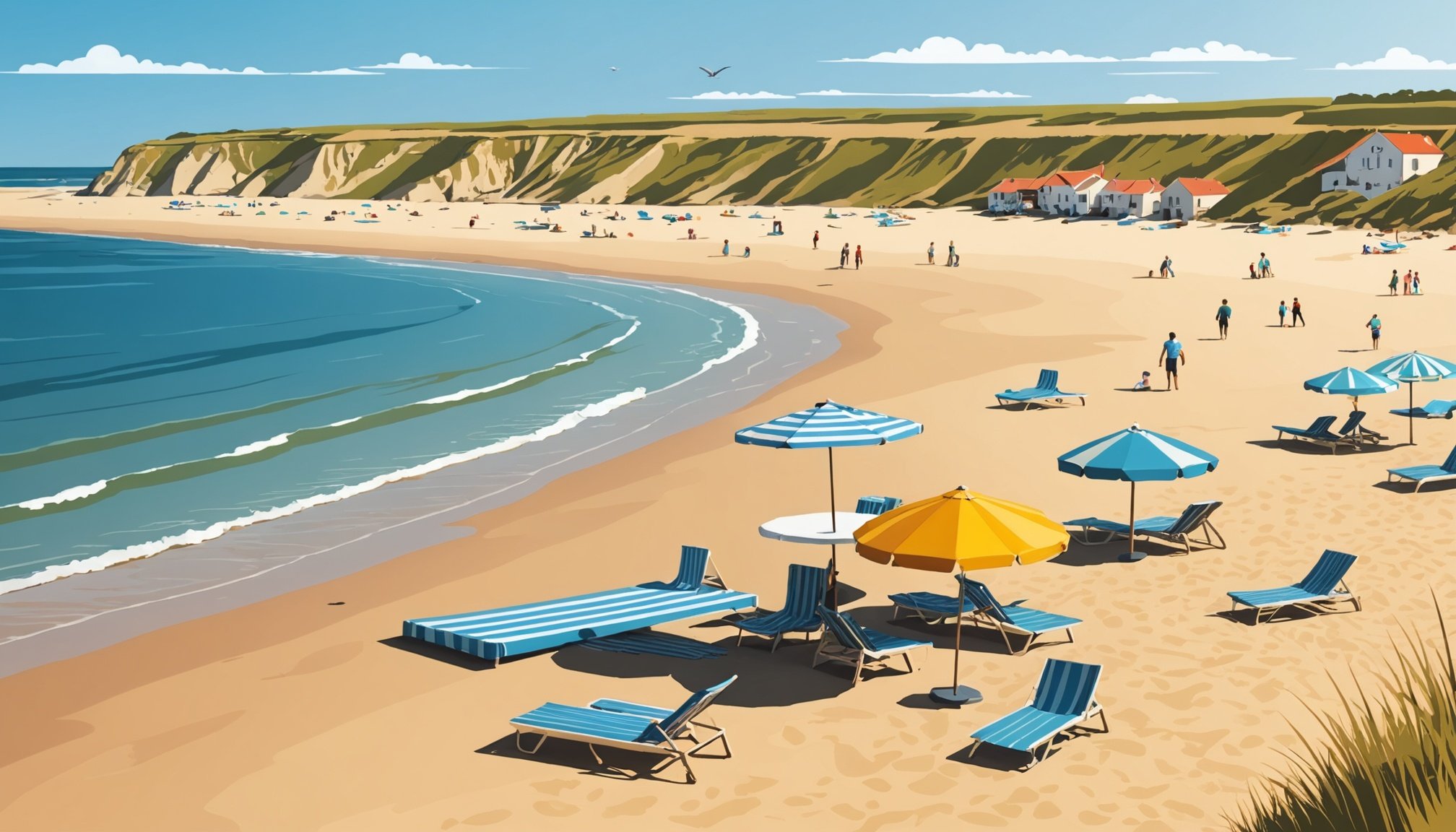 Saint-Jean-de-Monts, station balnéaire animée, attire avec ses activités nautiques variées et la présence de sentiers côtiers idéals pour les promenades face à l’océan. Plus au sud, la plage du Golf, appréciée pour sa tranquillité et son accès facilité, se prête parfaitement à des journées de détente.